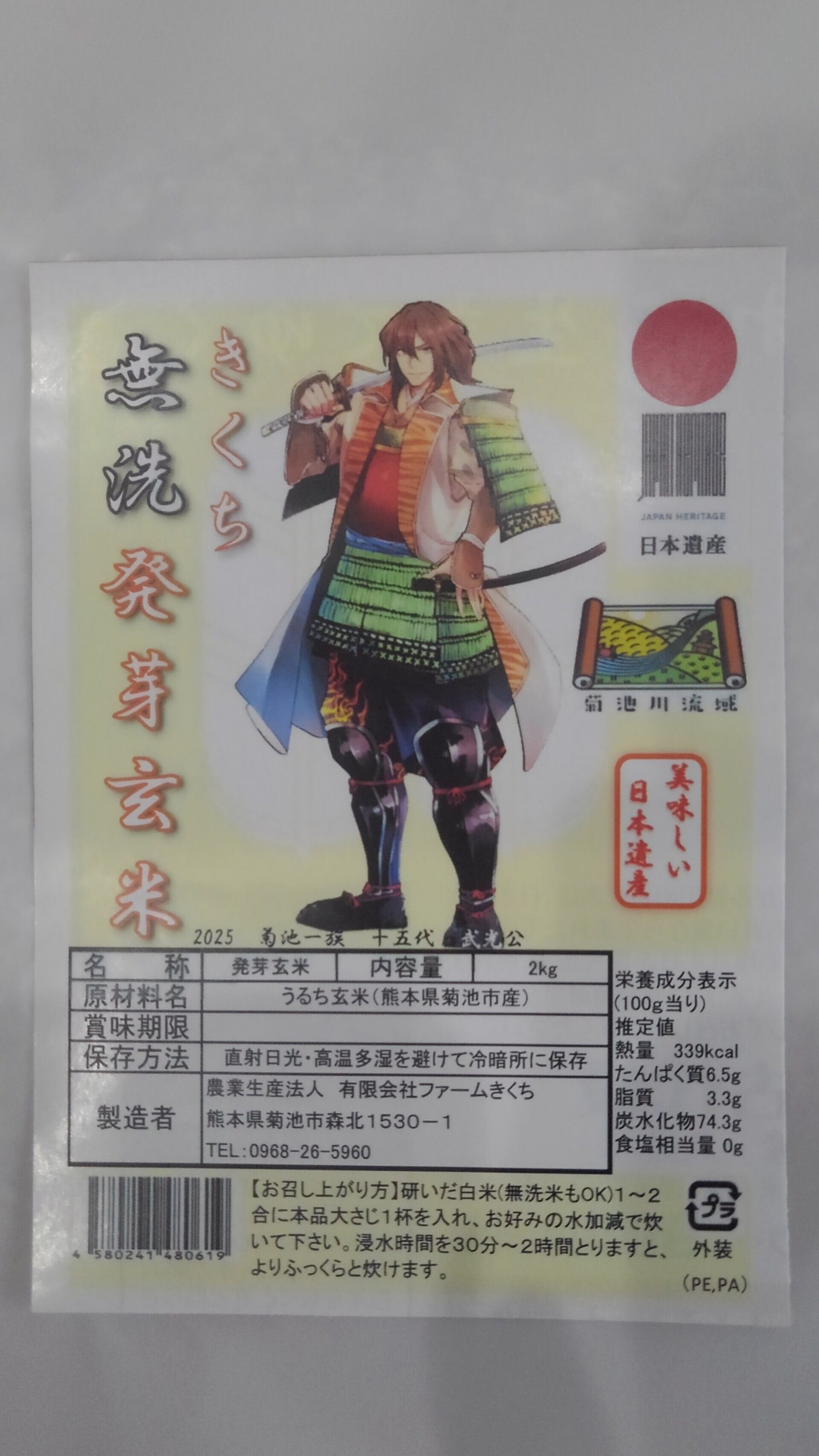 菊池米の代表的な品種であるヒノヒカリを発芽させることでGABA等の栄養を高め、一般的な玄米よりもヌカが少なく研がずに炊ける点と、柔らかい食感が特徴です